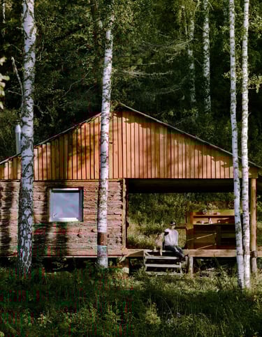 The Birch Studio embraces minimalism in its purest form – a compact yet airy space for quiet reflection. Pale birch walls and soft daylight create an atmosphere of peace and focus. Ideal for solo travelers or couples who appreciate simplicity and calm design.