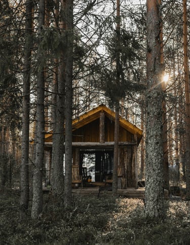 The Cedar Pavilion sits quietly within a circle of tall trees – a retreat designed for reflection and rest. Soft cedar walls and large windows create a balance of warmth and openness. Perfect for couples seeking stillness, nature, and gentle evenings under the forest canopy.