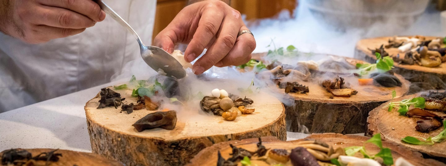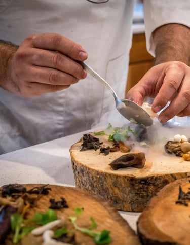 Our chefs work with nearby farms and artisans to create menus that change with nature. Each plate celebrates local produce, forest herbs, and mountain honey – prepared with care and served with ease.
